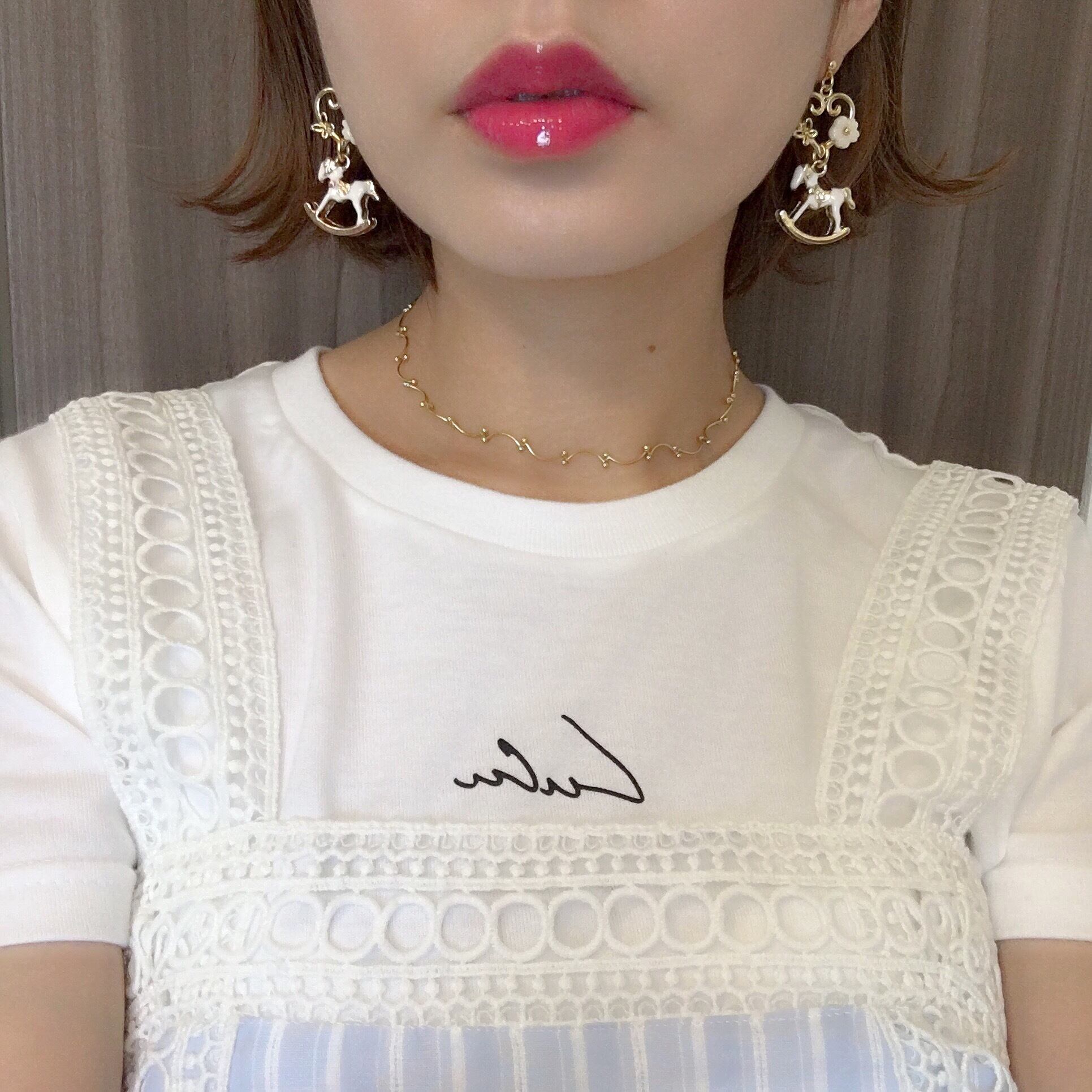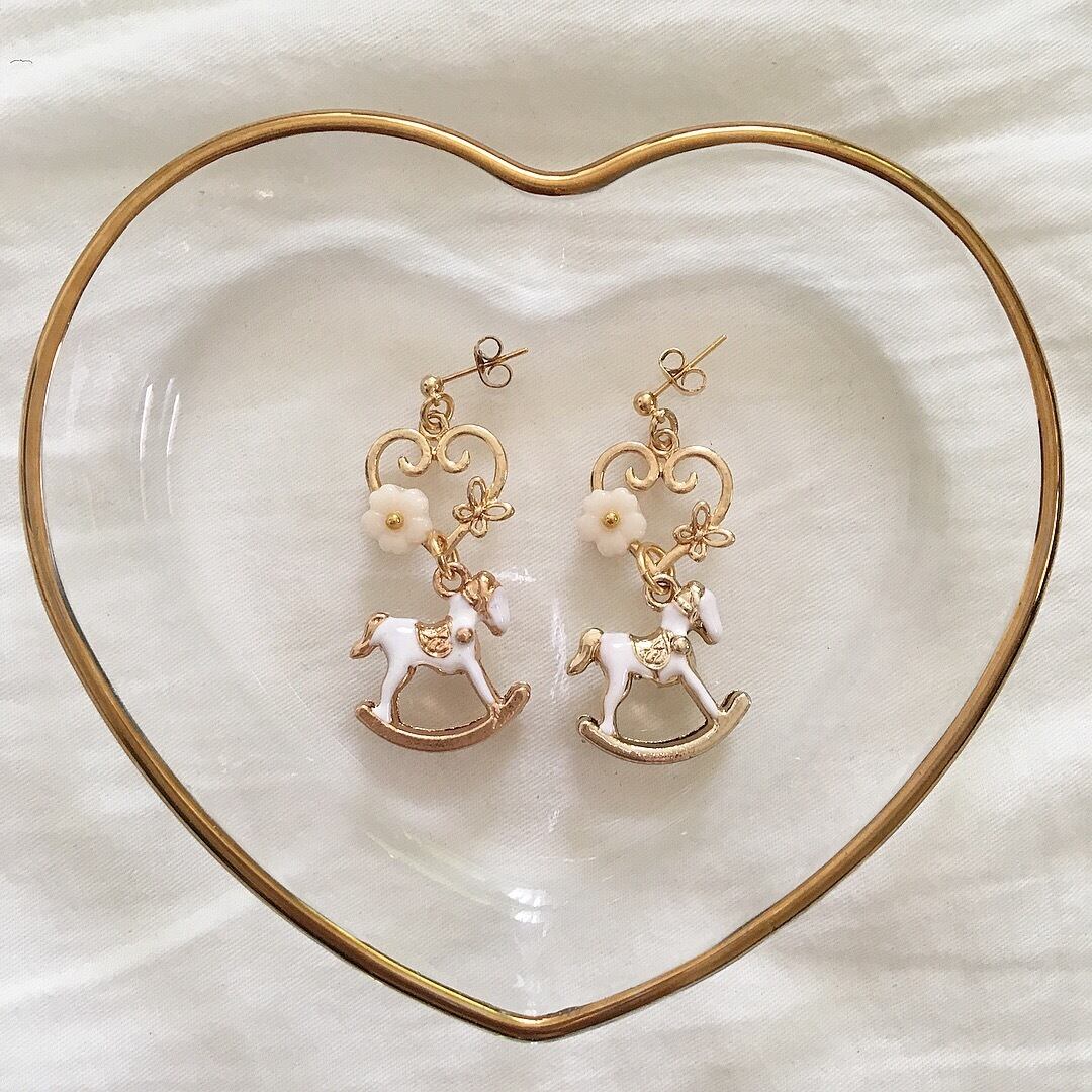 立体的な木馬モチーフとお花が付いた♡イヤーアクセ。