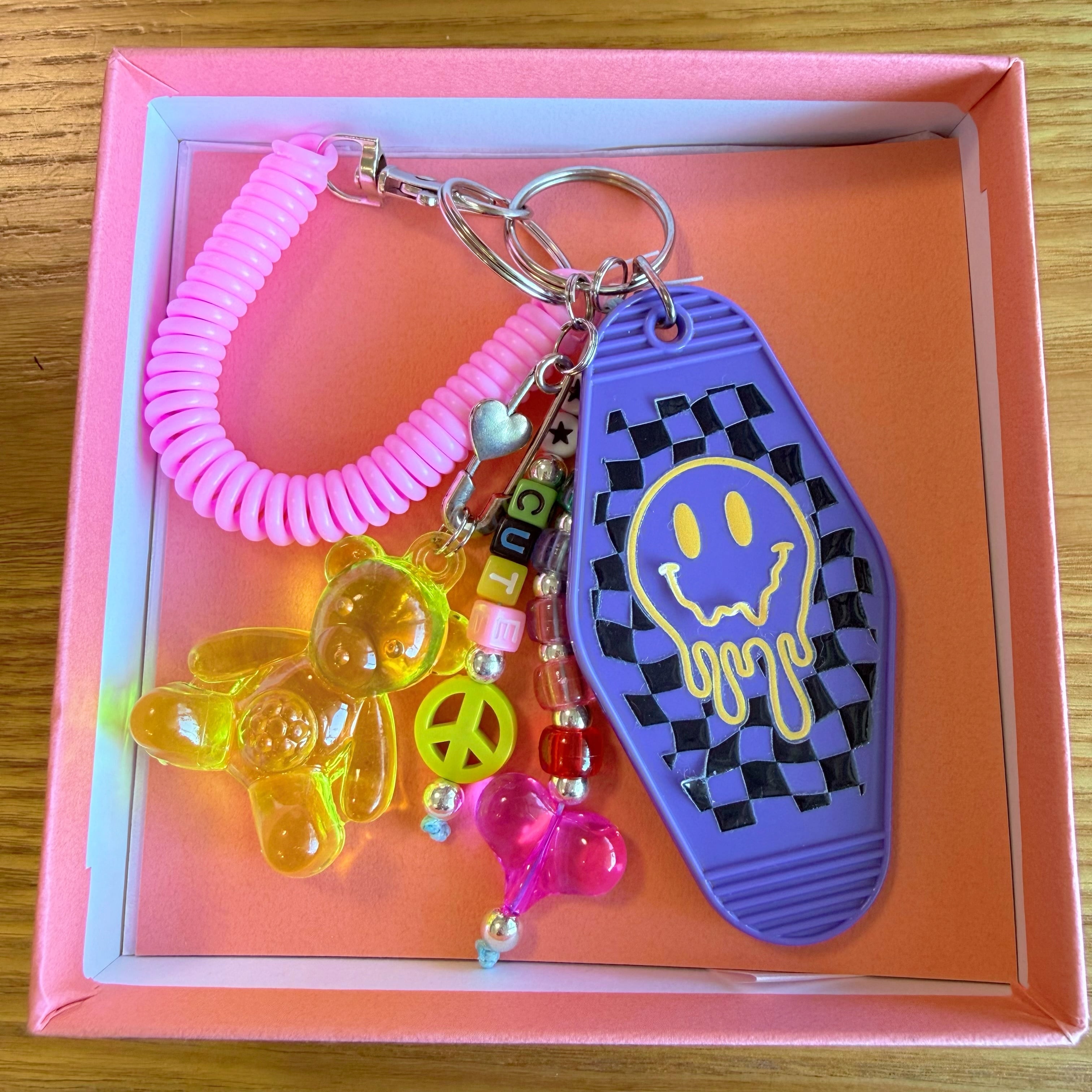 大きめのクリアクマさんとホテルタグをメインにしたキーホルダー。