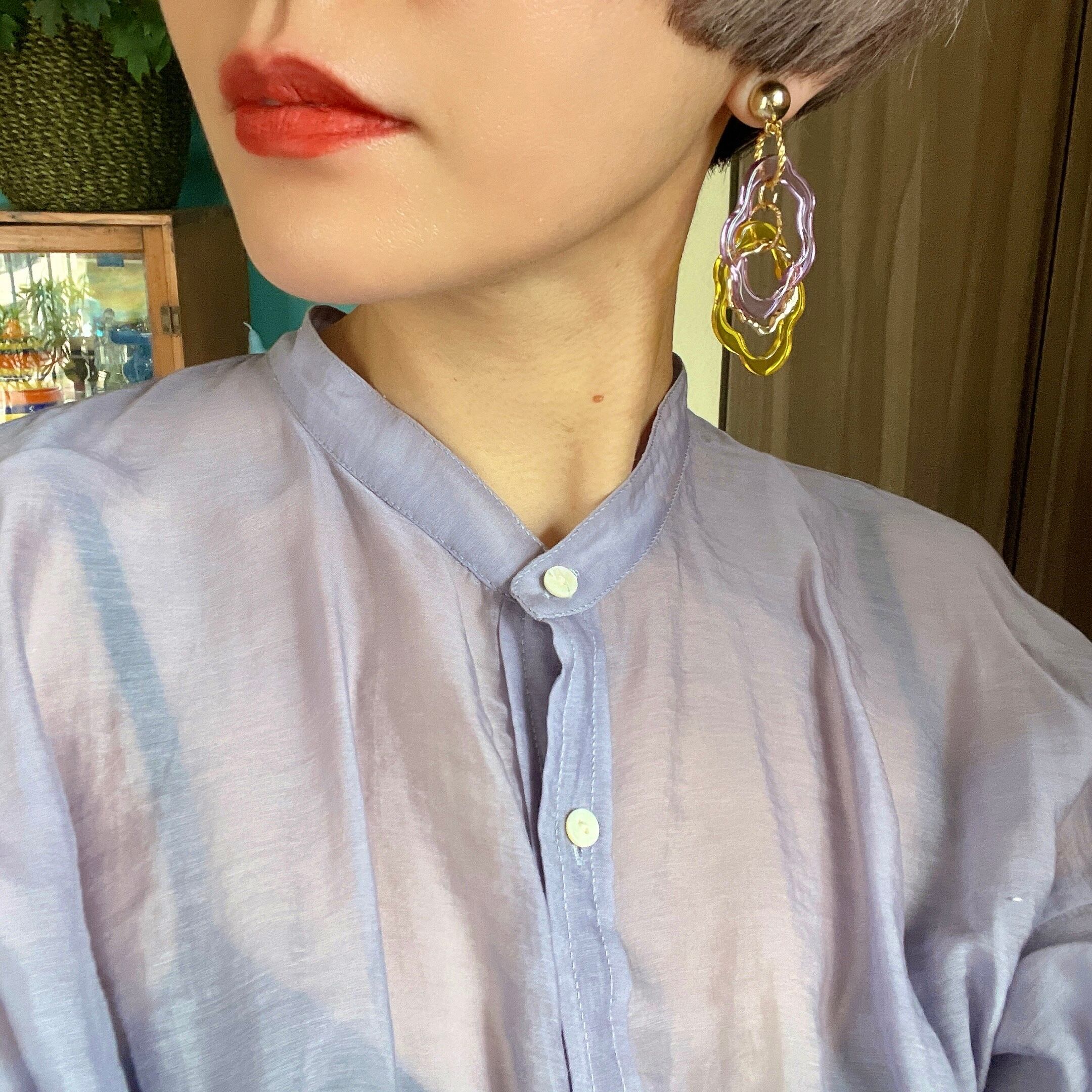 アクリルのカラーパーツを組み合わせたピアス。